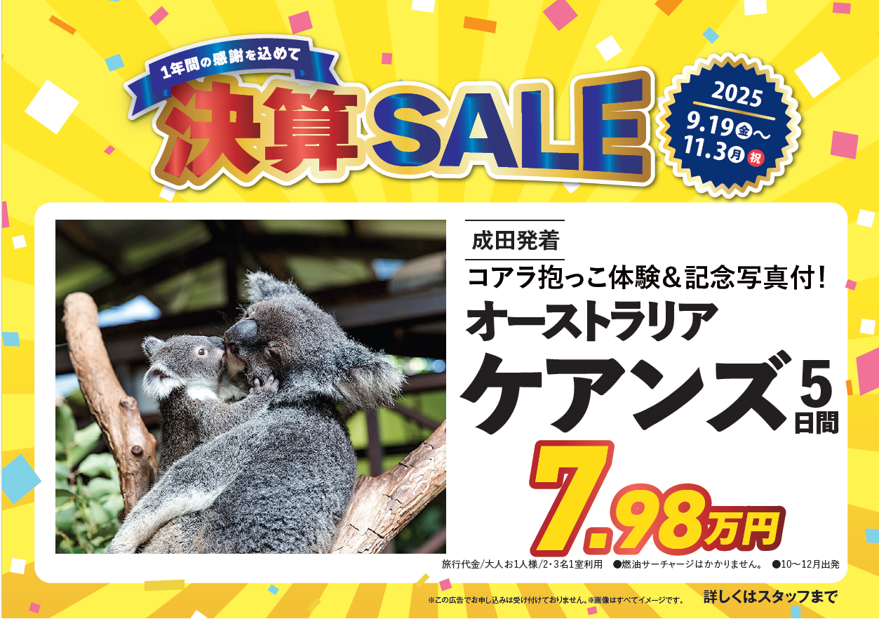 ★☆年末おすすめ商品 年末年始のケアンズ6日間(ジェットスター航空利用)★☆ 2025/10/01