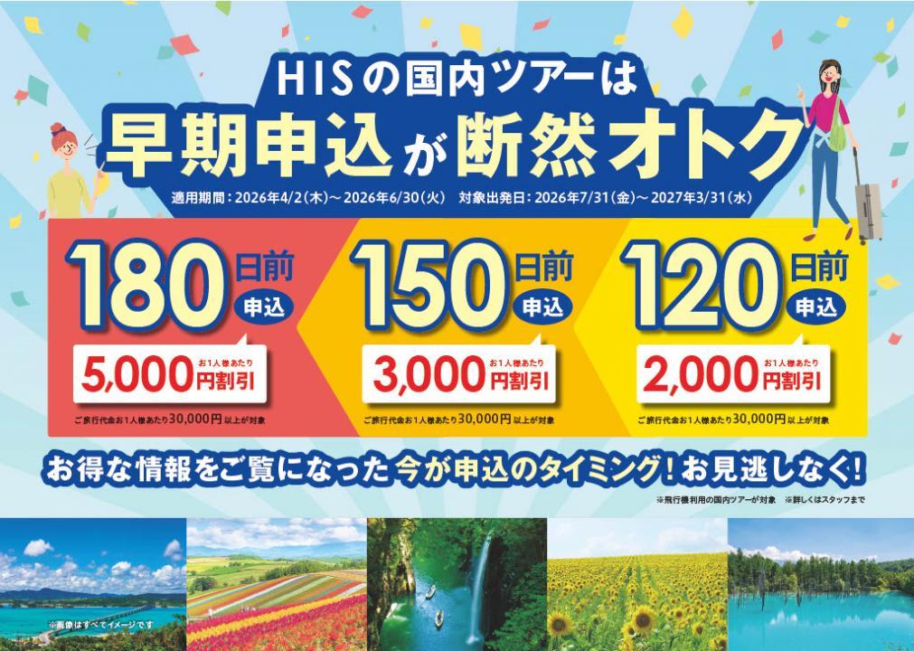 ☆★4/2~ 国内ツアータイムセール開催☆★ 2026/04/02