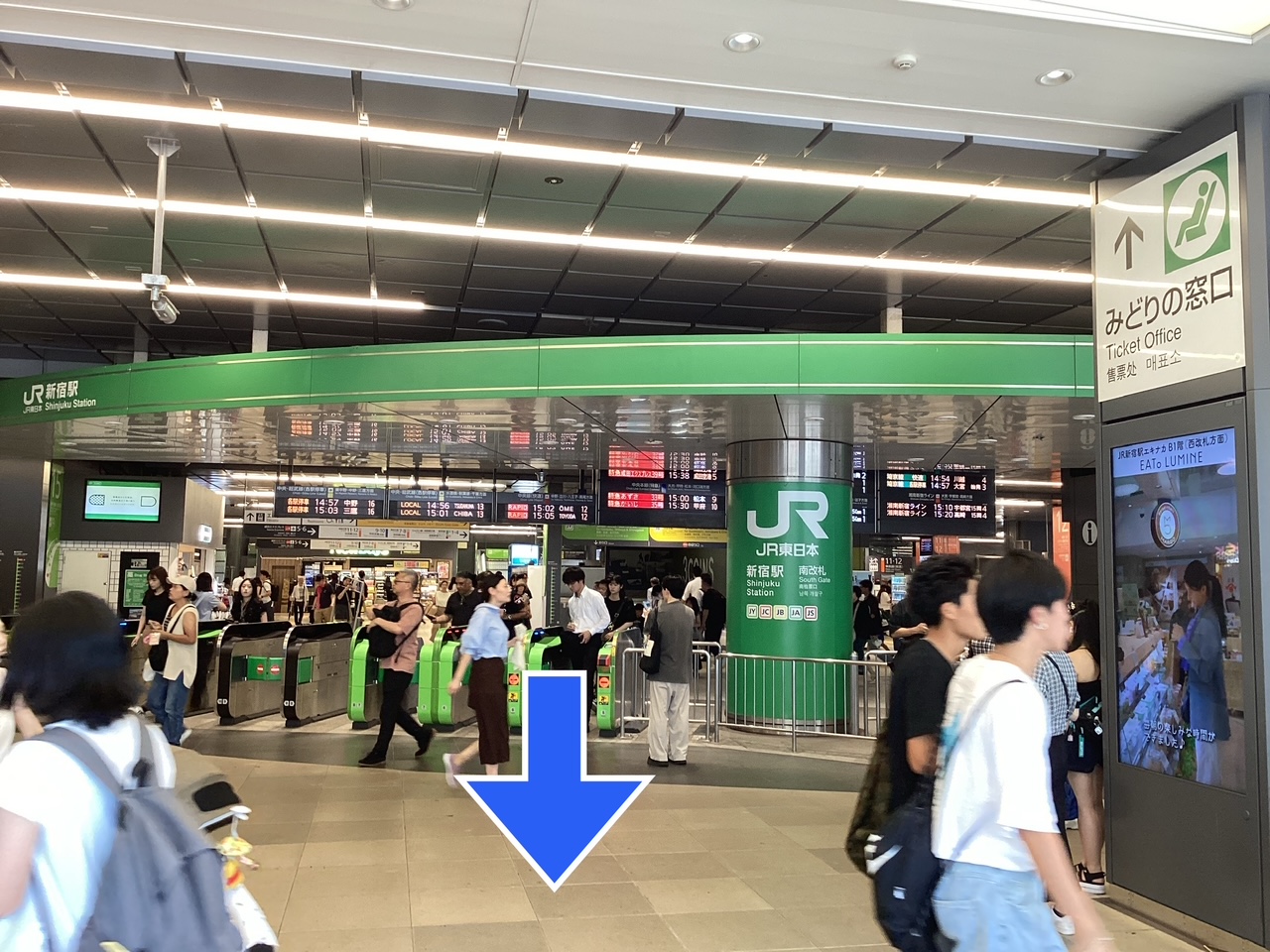 ①JR新宿駅【南改札】を出ます(左写真)