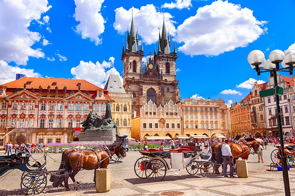 世界遺産プラハ歴史地区では多様な歴史建築が並ぶ美しい街並みをお楽しみください。