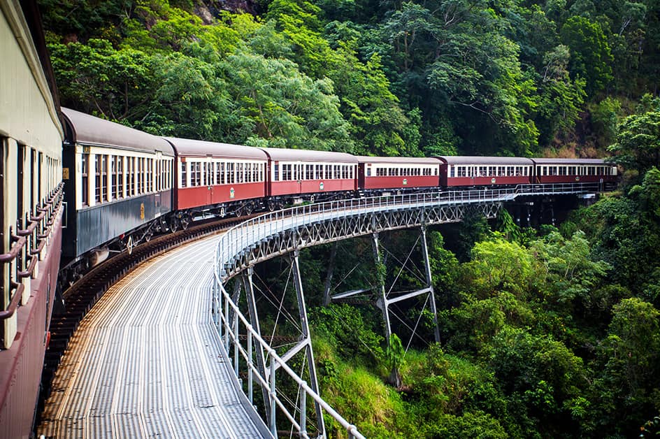 世界遺産の熱帯雨林キュランダ観光では125年の歴史を誇るキュランダ鉄道や