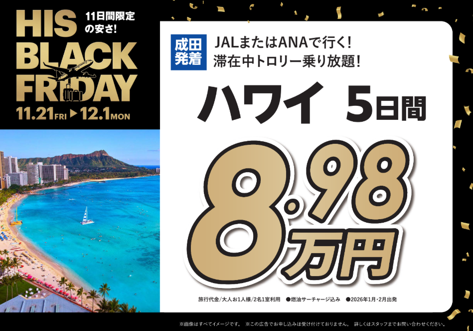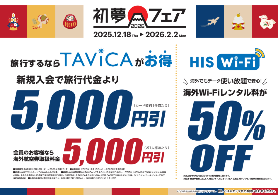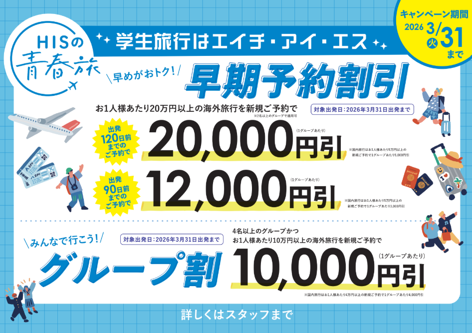 本キャンペーン特典の適用には、必ずHIS店舗にて