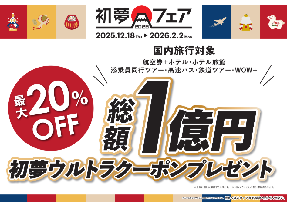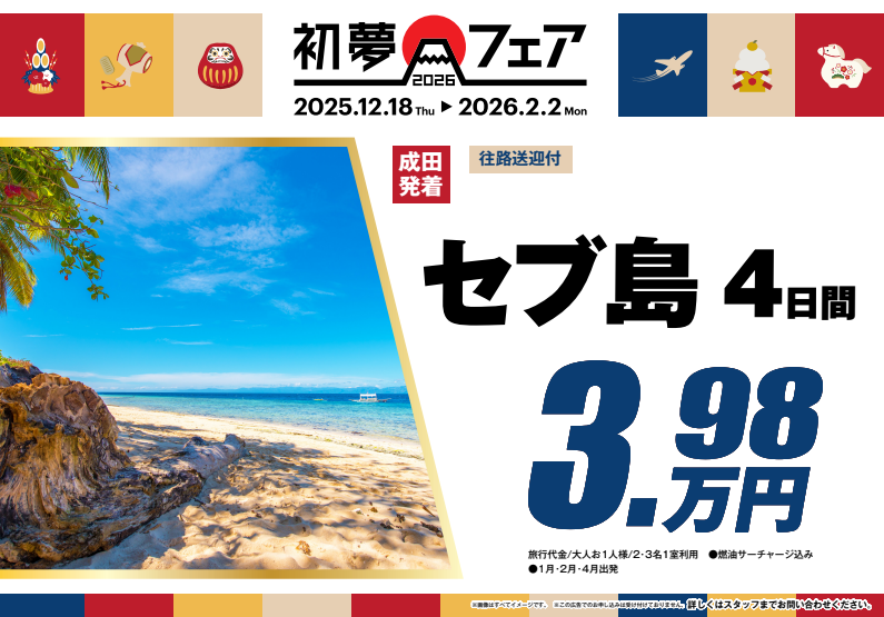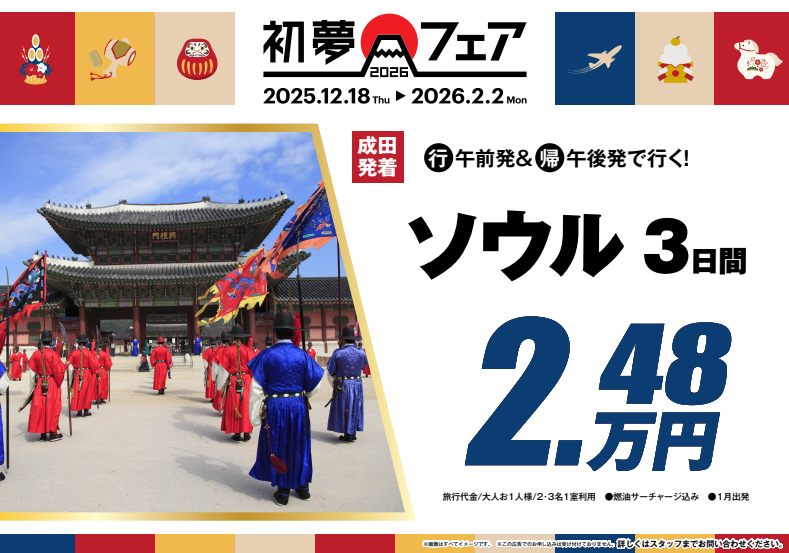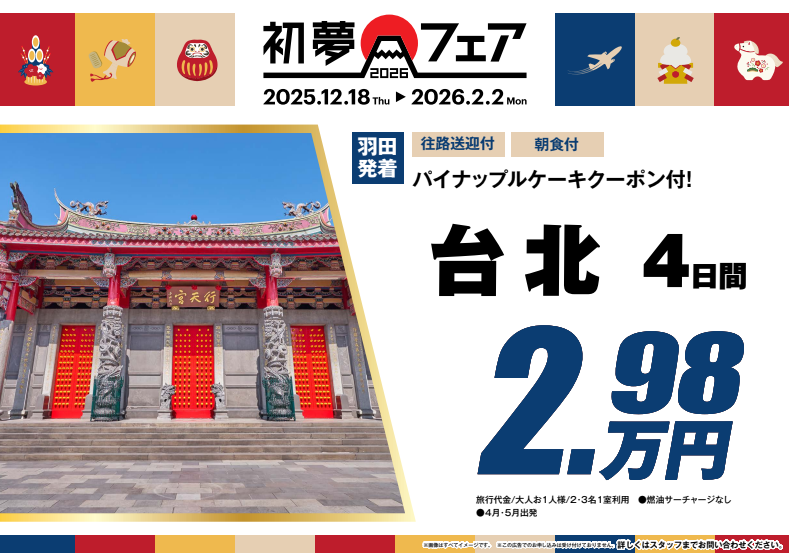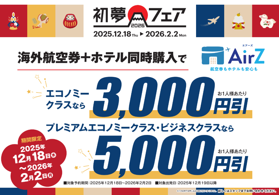 ご出発期間 :2025年11月18日(火)~ 2026年6月30日(火)