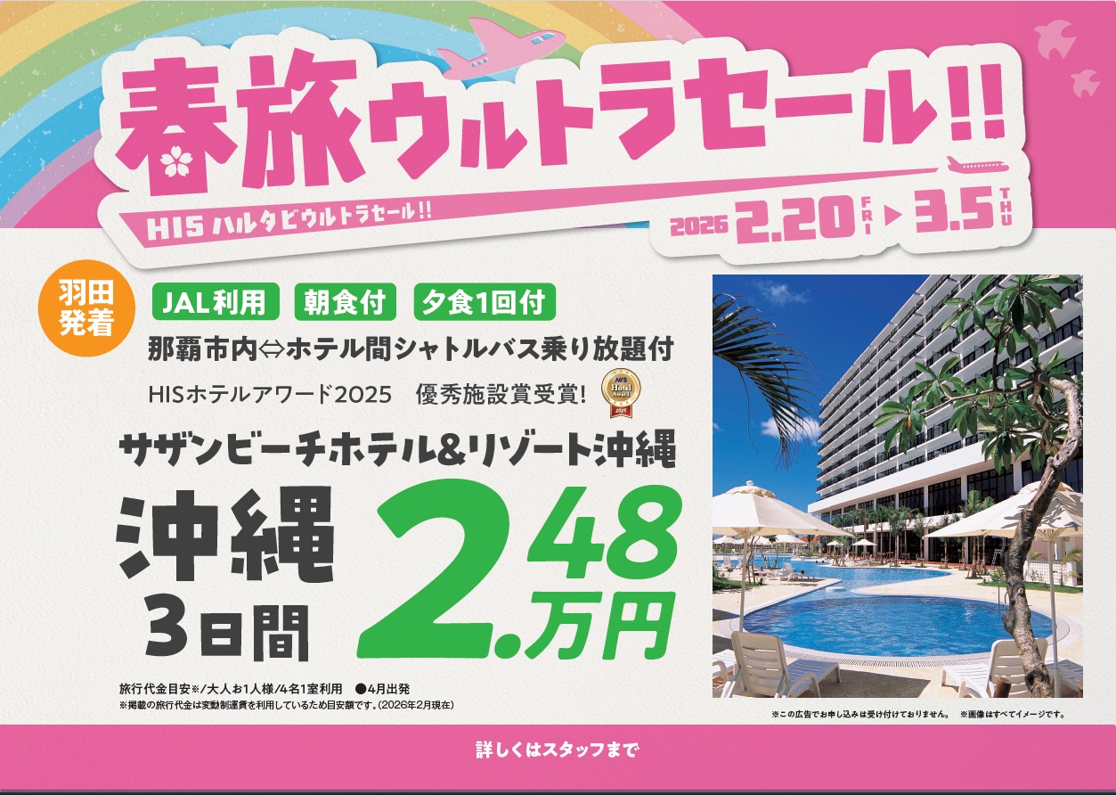 当店での国内旅行のご予約は、【航空機利用ホテル付のパッケージツアー】の取り扱いのみとさせていただきます。
