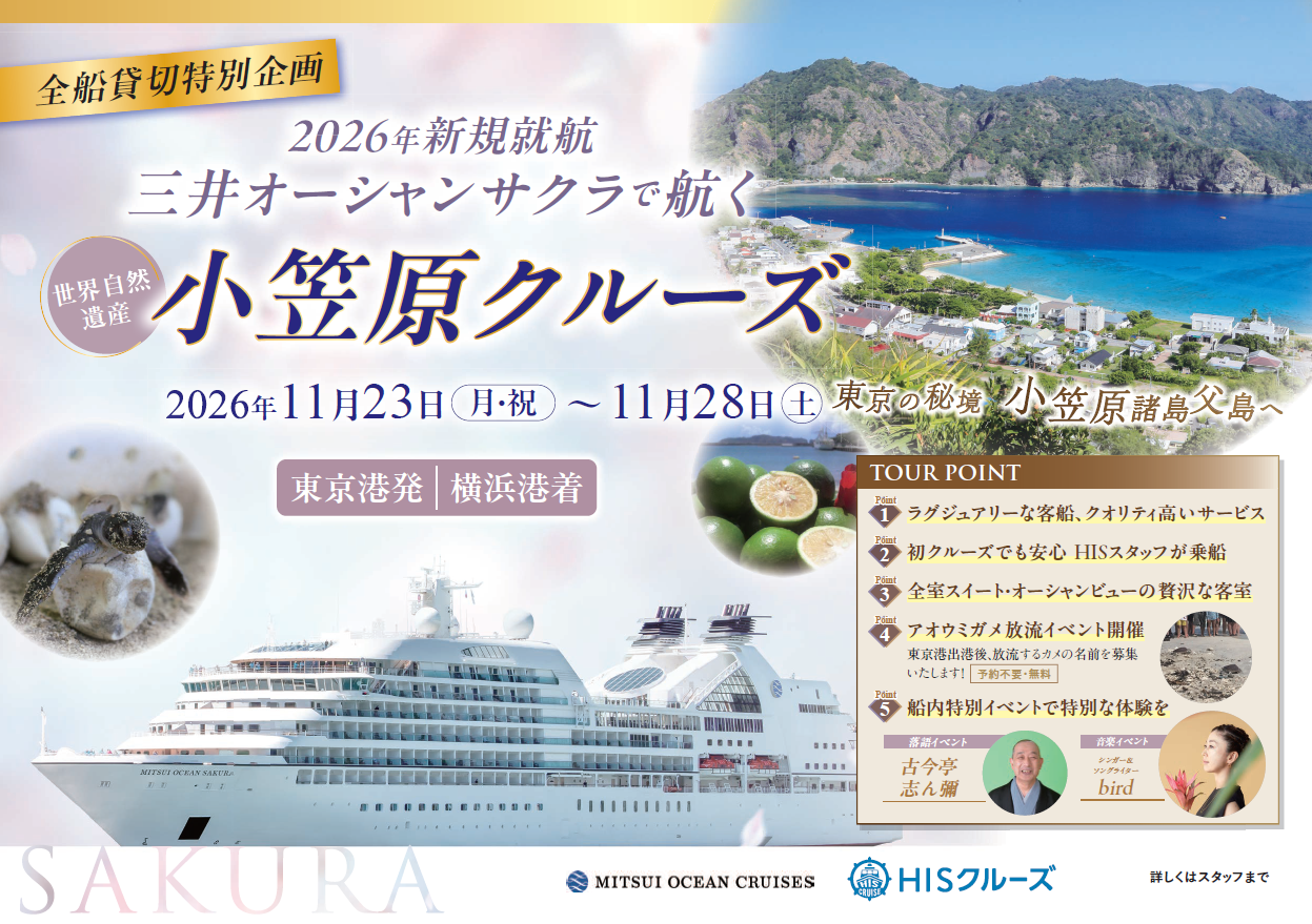 ★☆2026年11月23日 新造船三井オーシャンサクラで航く小笠原クルーズ☆★