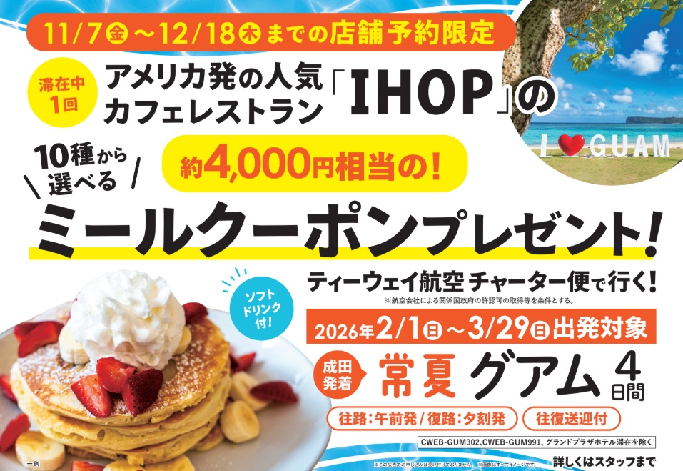 下記期間内のご予約で、約4,000円相当のミールクーポンプレゼント!