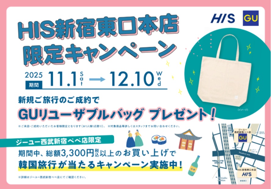 | 名称 | HIS新宿東口本店(新宿駅東口から徒歩5分) | ||