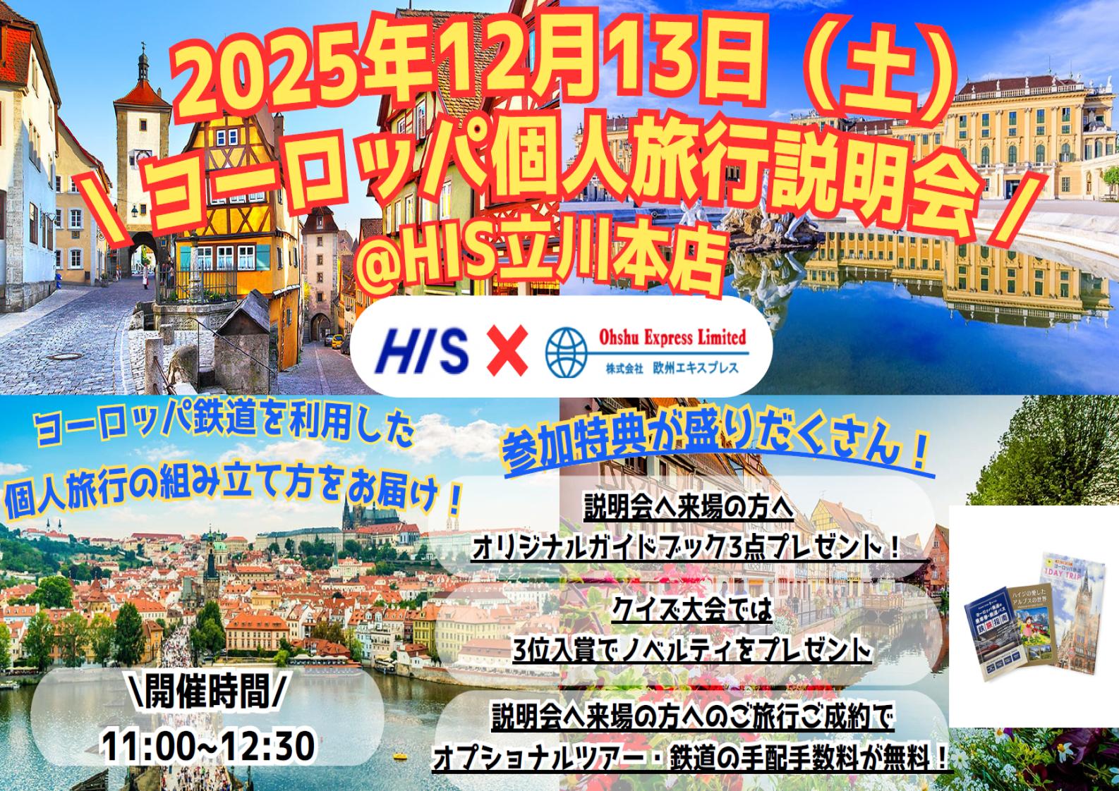 12/13(土) ヨーロッパ自由旅行説明会開催!ヨーロッパ鉄道エキスパート登壇!【ご来場特典・クイズ入賞特典・ご旅行成約特典有!】