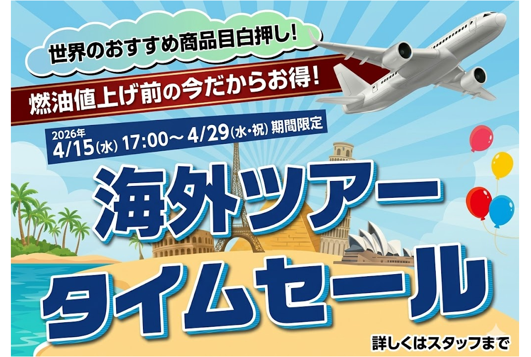 今回のタイムセールでは、燃油値上げ前のお得な価格に加え、