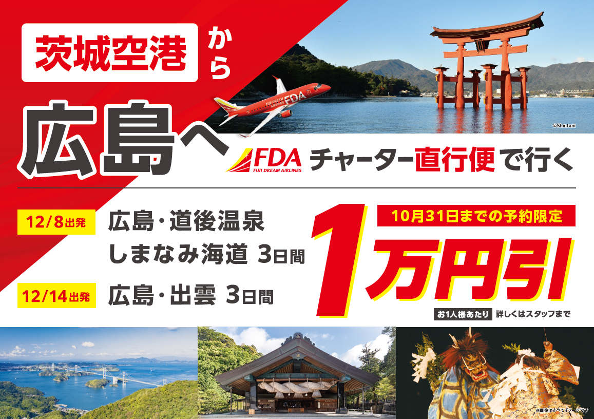 チャーター直行便で行く 広島・道後温泉・しまなみ海道 3日間
