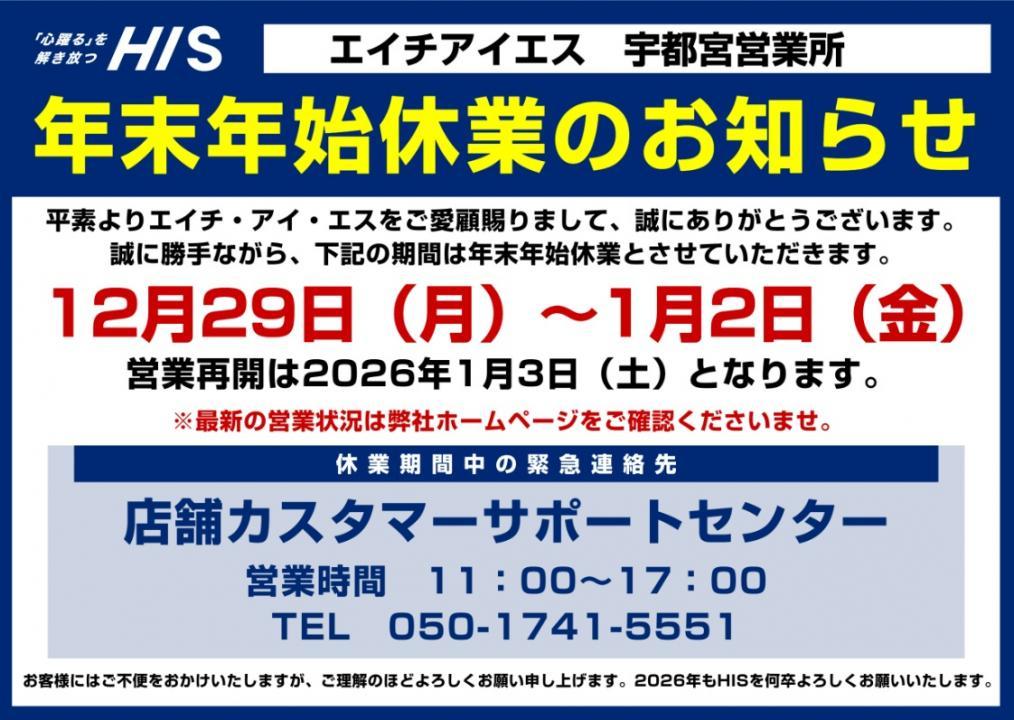 ①宇都宮営業所予約割引 2万円引き(お1人様につき)