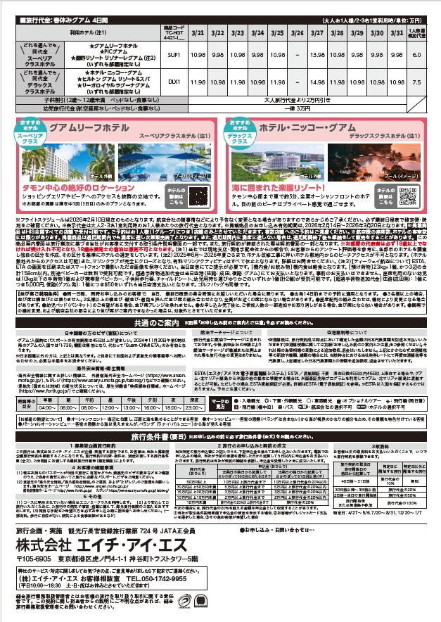4日間で行ける常夏のグアムのご案内です。
