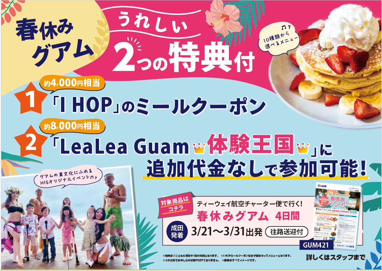 ②LeaLea Guam体験王国付(8,000円相当)