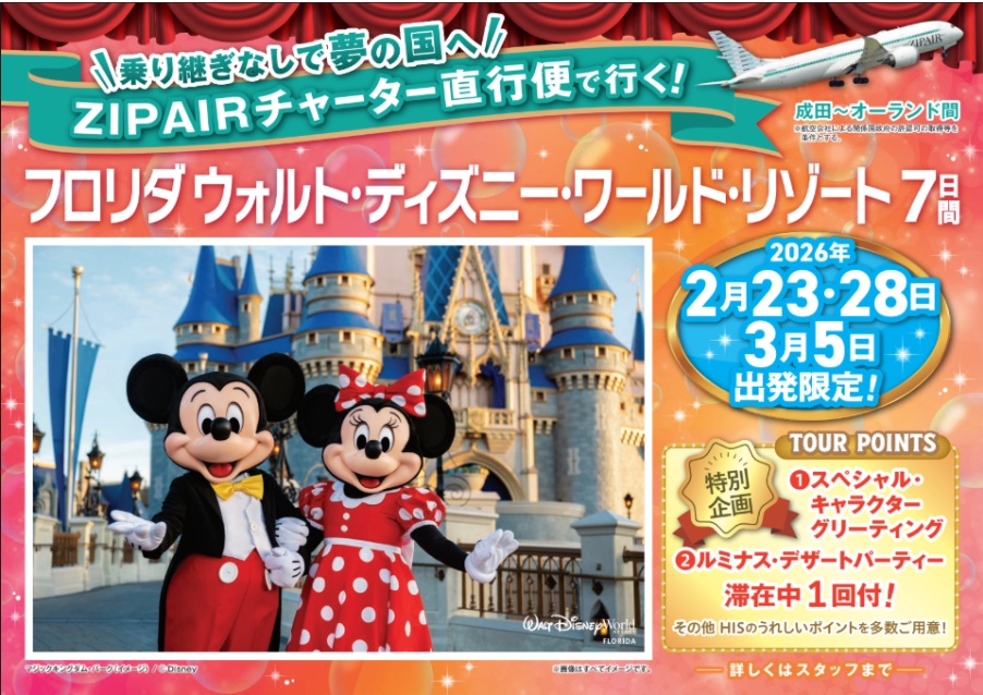 ★ZIPチャーター直行便限定!特別企画へご案内!