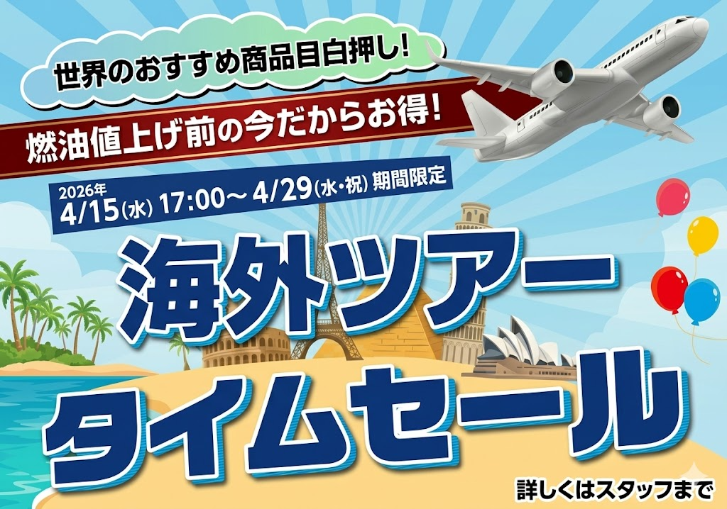 あり (● 新規旅行ご予約のお客様…3時間●ご予約済のお客様…1時間●ご相談のみのお客様…2時間)