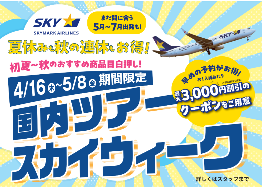 夏休みやシルバーウィークなど、人気の出発日も席が埋まってきてますので、