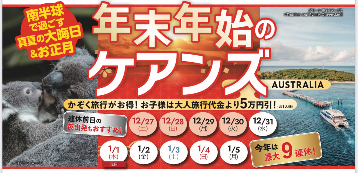 諸税等別途必要、燃油サーチャージはかかりません