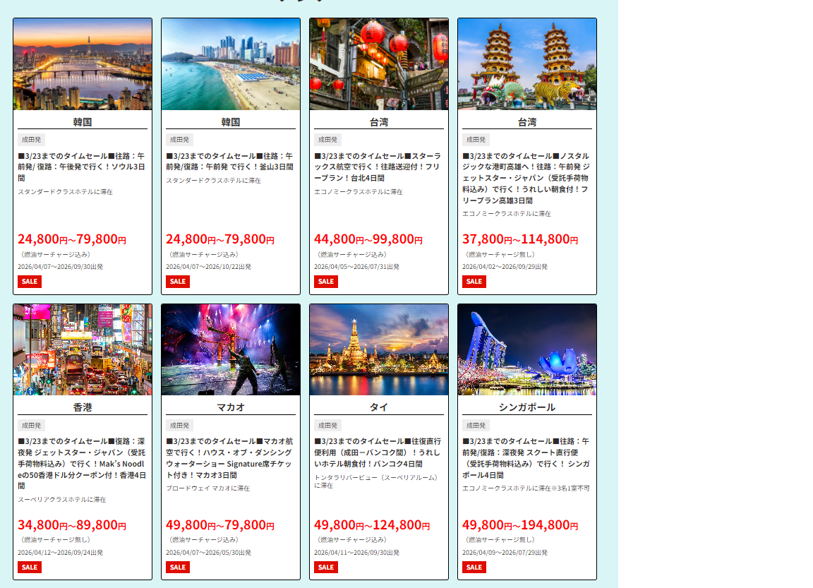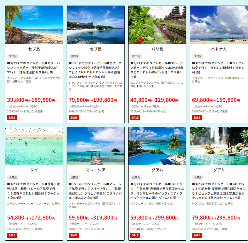 「航空機付きパッケージツアーのみ」