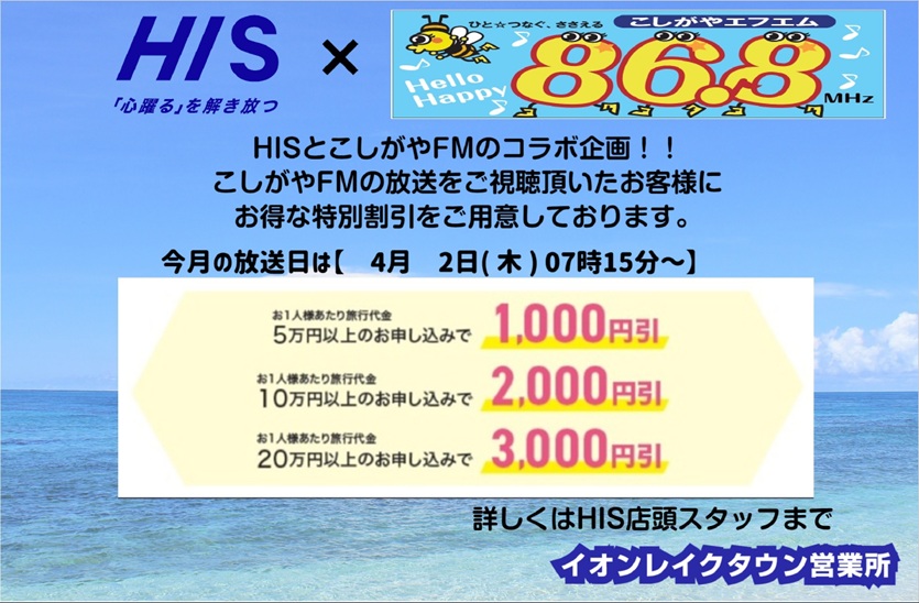 | 名称 | HISイオンレイクタウン営業所 | ||