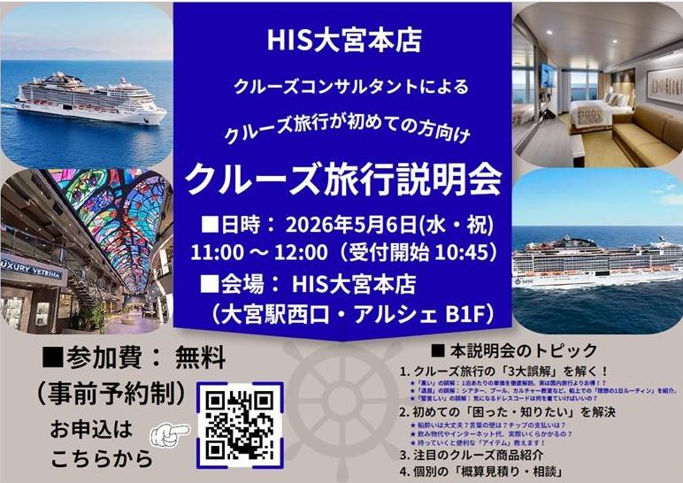 ☆★初めてのクルーズ旅行説明会 @HIS大宮本店営業所☆★ 2026/04/08