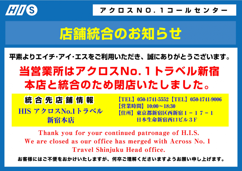 | 名称 | HIS アクロス・NO.1トラベルコールセンター営業所 | ||