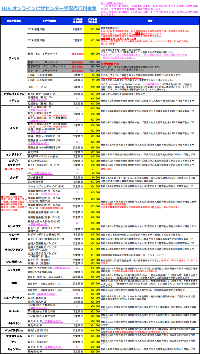※当センターでは、ビザ手配代行料金等の値引き交渉には一切応じません。