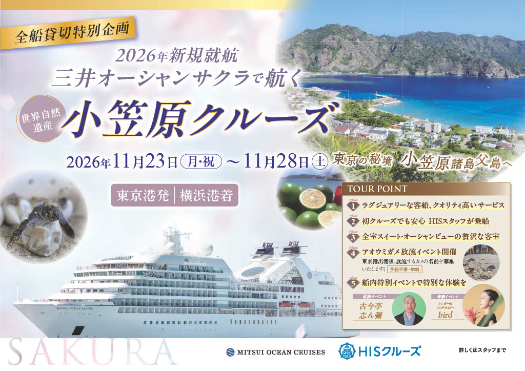 2026年9月新規就航のラグジュアリー船で初寄港の小笠原を訪れます。