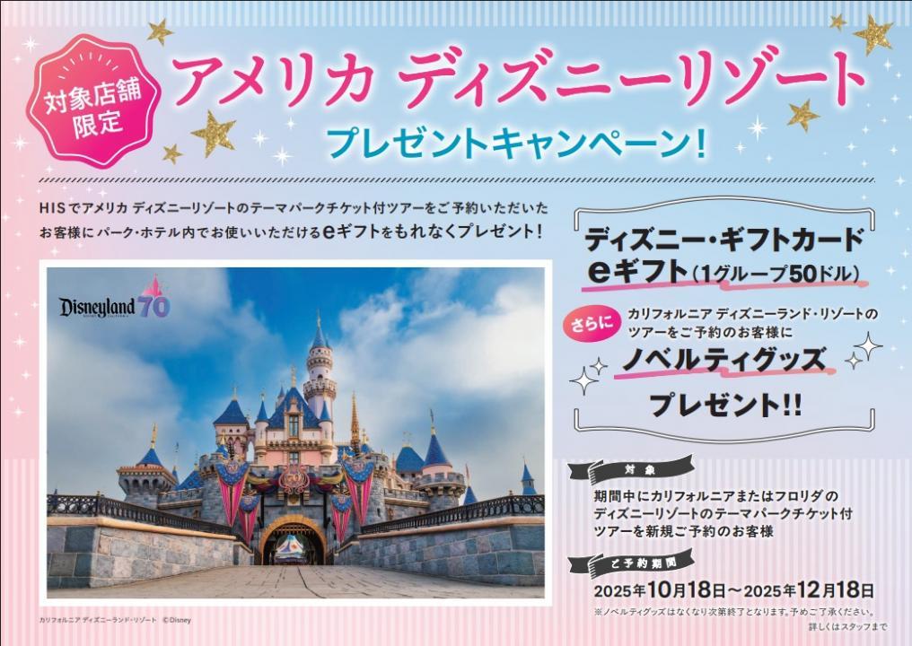 ★アメリカ ディズニーリゾート プレゼントキャンペーン【10/18~12/18】★ 2025/10/19