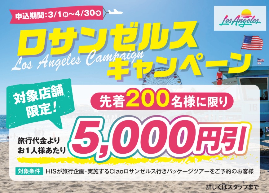 ロサンゼルスキャンペーンのお知らせです!