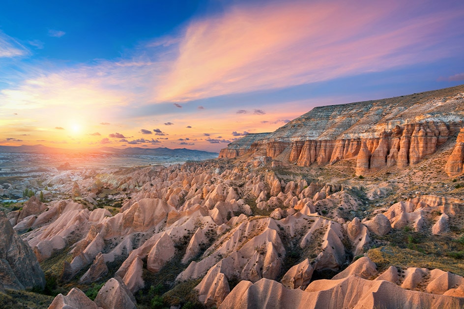 世界遺産カッパドキアでは、巨大な地下都市やギョレメ野外博物館の入場観光に加え、ローズバレーの絶景スポットへもご案内!