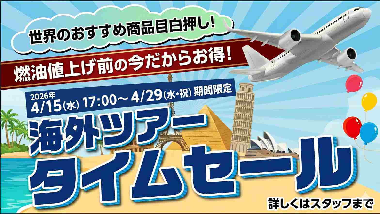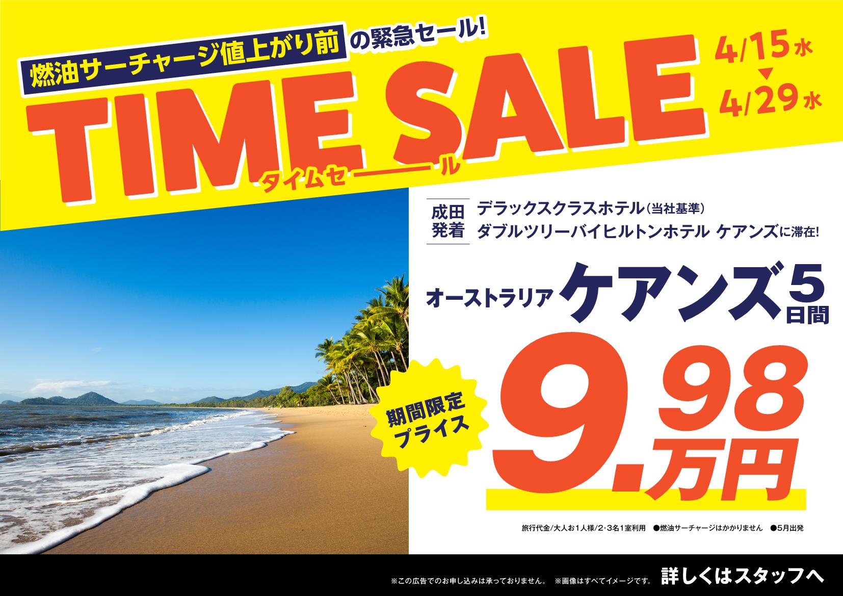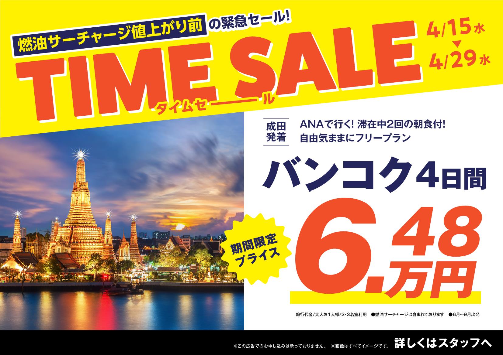 今回のタイムセールでは、燃油値上げ前のお得な価格に加え、