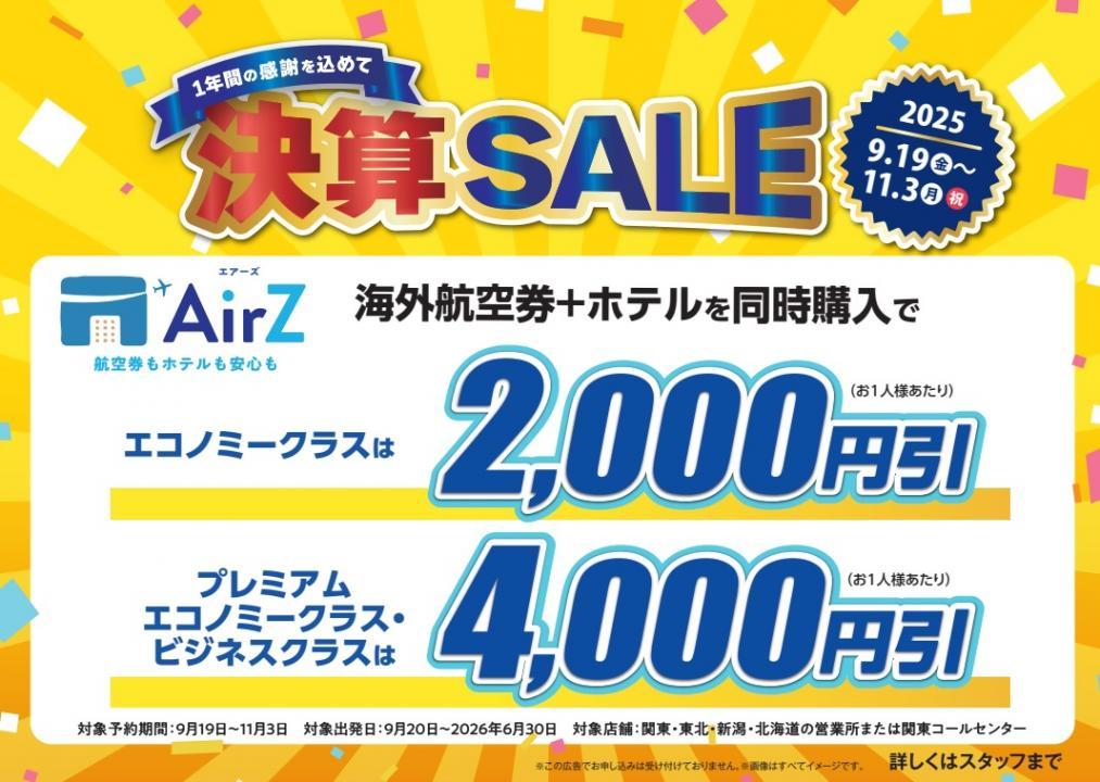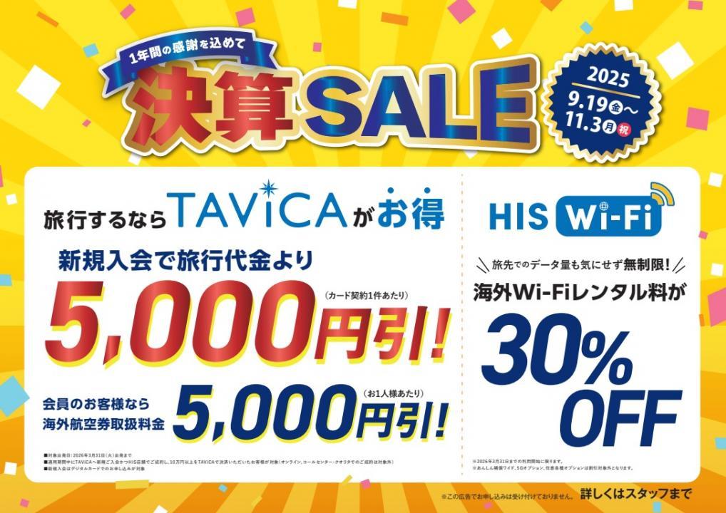 HISより1年間の感謝を込めて、決算セールを開催いたします!