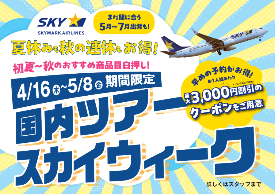 スカイマークを利用して、夏休みやシルバーウィークもお得に!