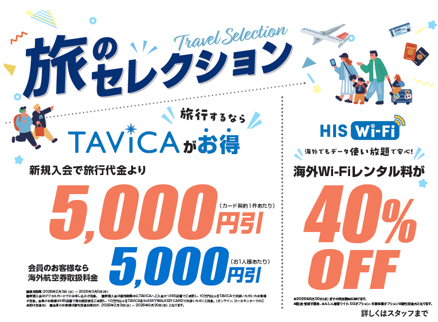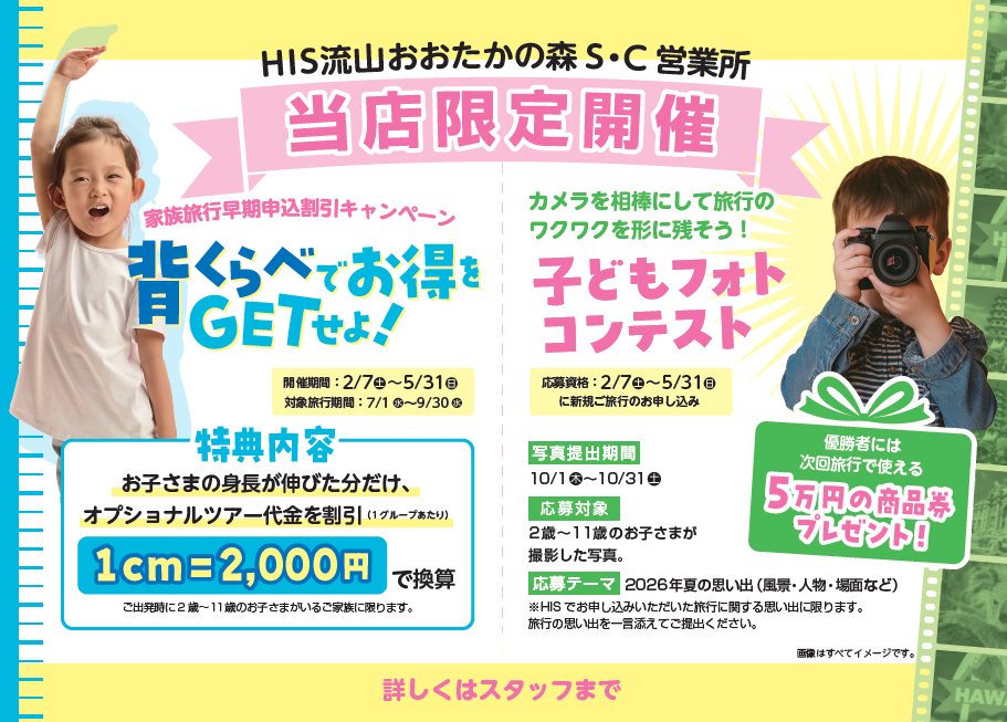 【当店限定企画】ご家族旅行の2大キャンペーン開始!! 2026/02/08