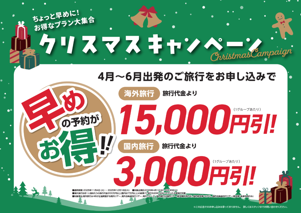 10:00-21:00 国内旅行のお問合せは現在「飛行機利用ツアー」のみの受付とさせて頂いております。 ※以下の取り扱いはしておりません。※ 「国内航空券のみ」 「国内ホテルのみ」 「鉄道利用ツアー(クオリタツアーのみ取扱有)」 「バスツアー」 |