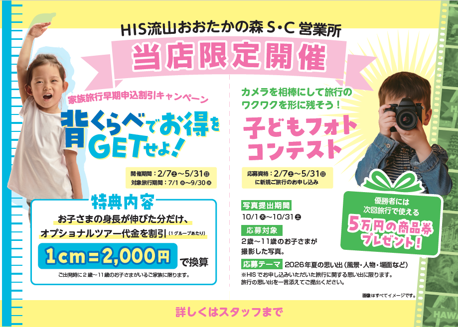 【当店限定企画】ご家族旅行の2大キャンペーン開始!!