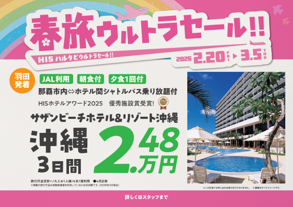 【2/20 10時~受付開始!!】春旅ウルトラセール開催!