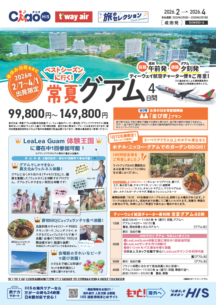 2/1~4/1ご出発限定で