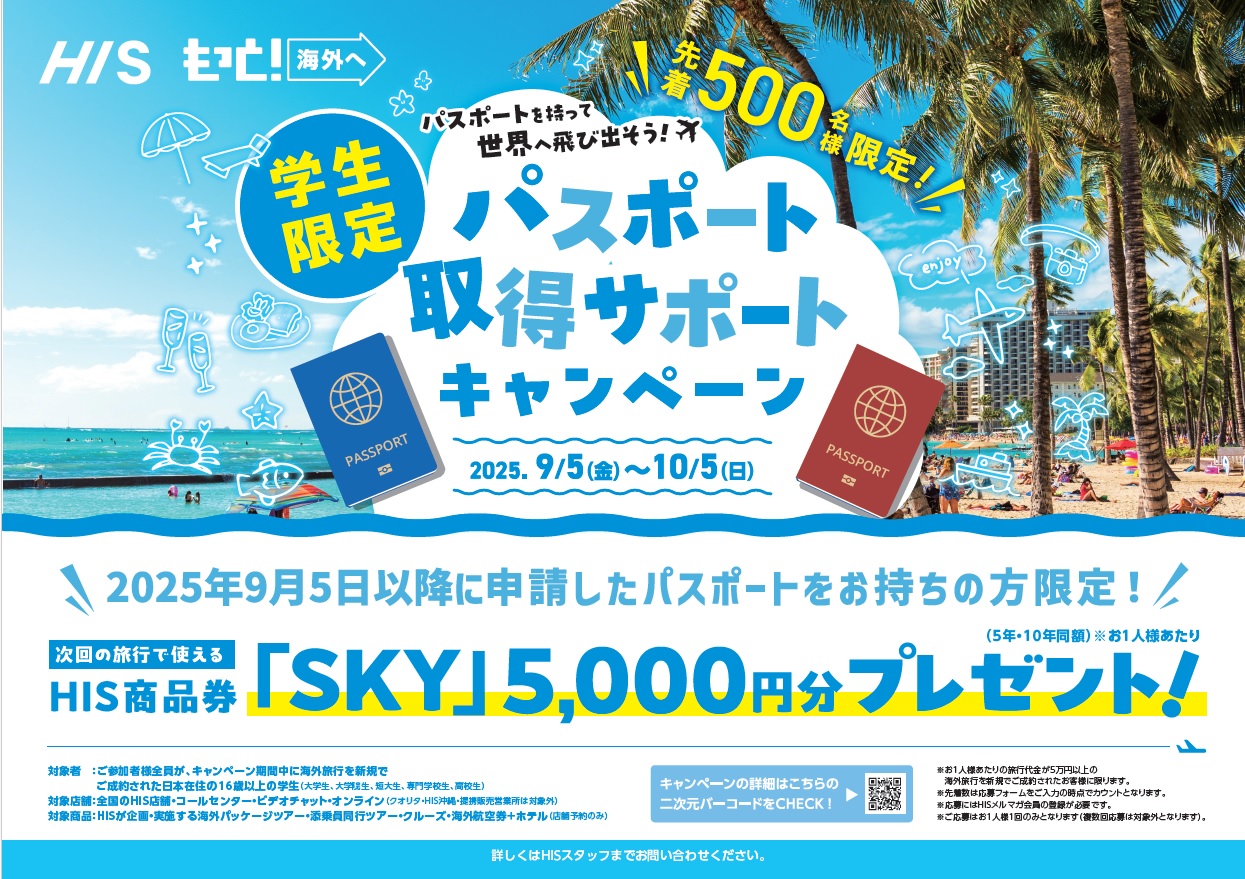また、9月5日以降にご旅行出発に向けてパスポートを作られる方には・・・