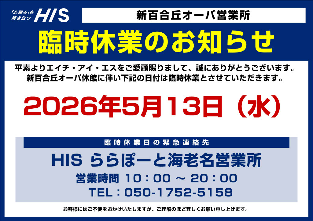 | 名称 | HIS新百合丘オーパ営業所 | ||