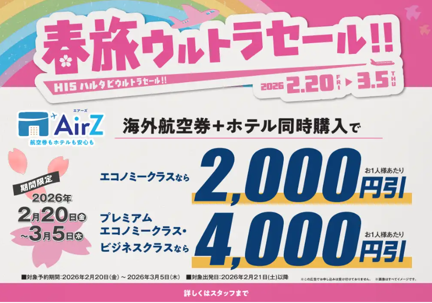 ★開催中★【春旅ウルトラセール!】2/20(金)~3/5(木)〈☎:050-1752-8427〉 2026/02/25