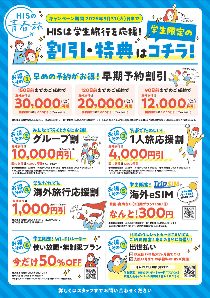 ★【学生キャンペーン】お得なクーポンが続々★ 2025/10/12