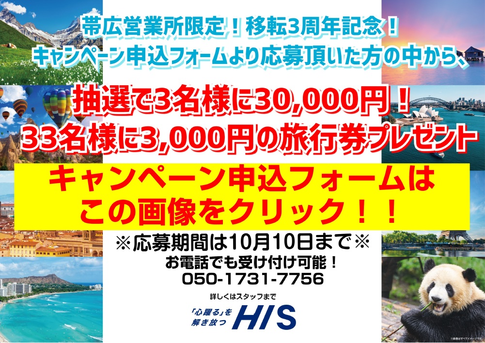 帯広営業所限定!!!移転3周年記念キャンペーン!!!