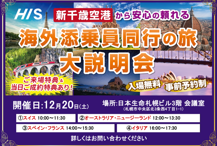 | 名称 | HISイオンモール札幌発寒営業所 | ||