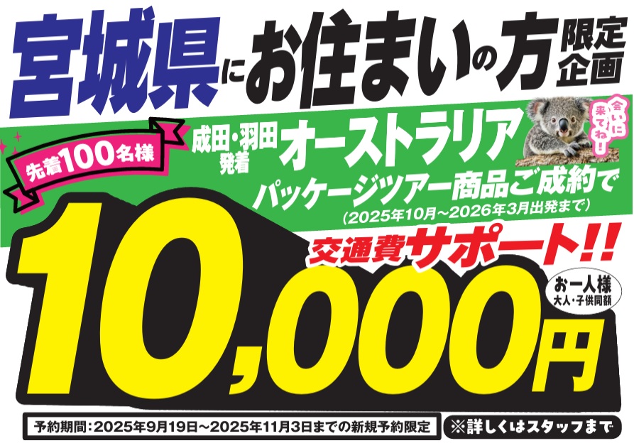 | 駐車場 | あり (仙台PARCO2提携駐車場(※旅行をご予約のお客様は最大2時間まで無料です)詳しくはスタッフにお尋ね下さい。) | ||