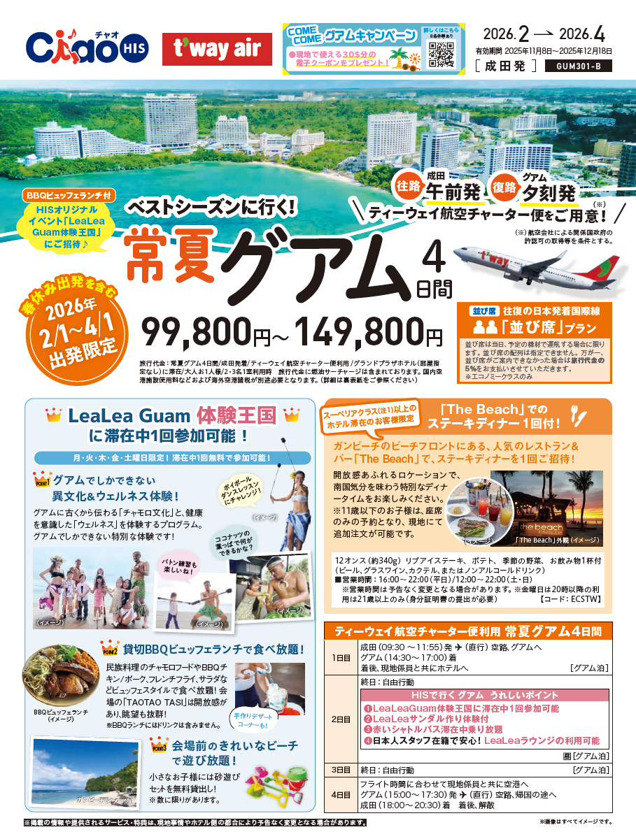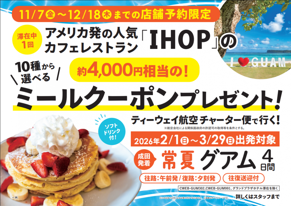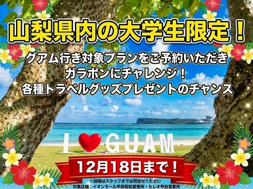 HIS甲府ではいま一押しのグアム旅行をお申込みの方に、