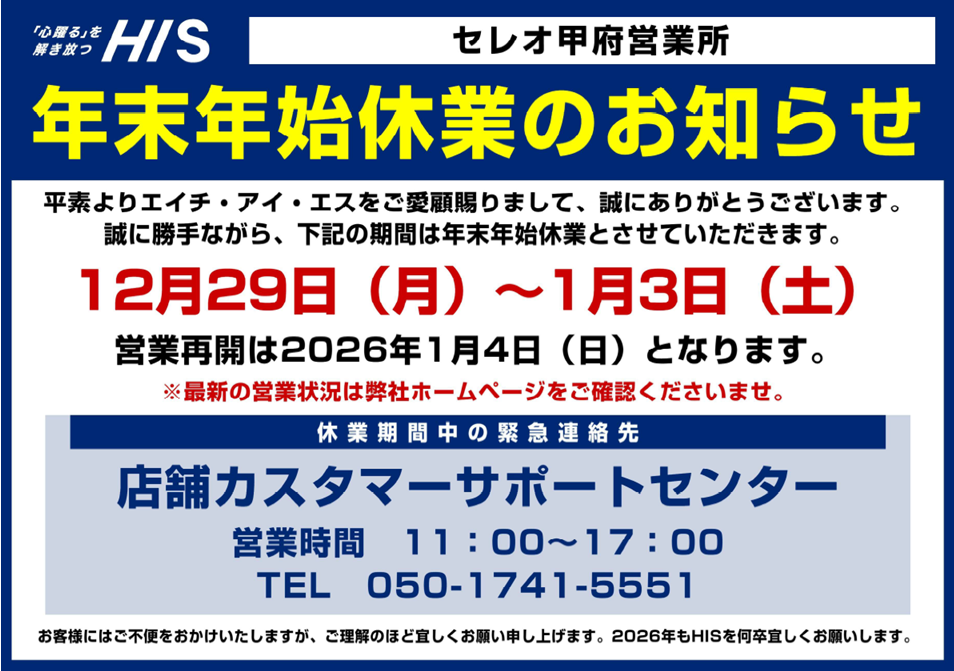 | TEL(その他) | メールでのお問合わせは、his053a@his-world.com | ||