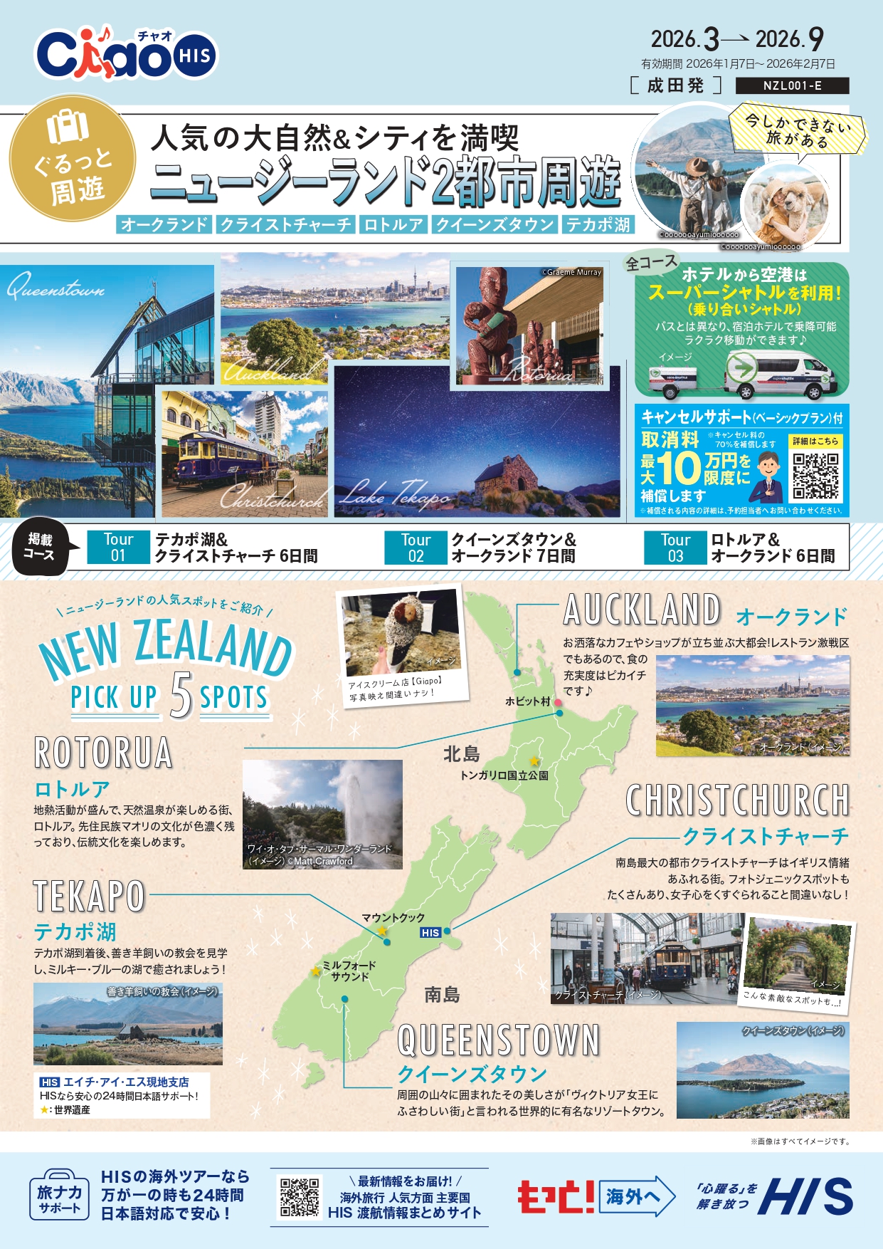 クライストチャーチ&テカポ 6日間 成田発