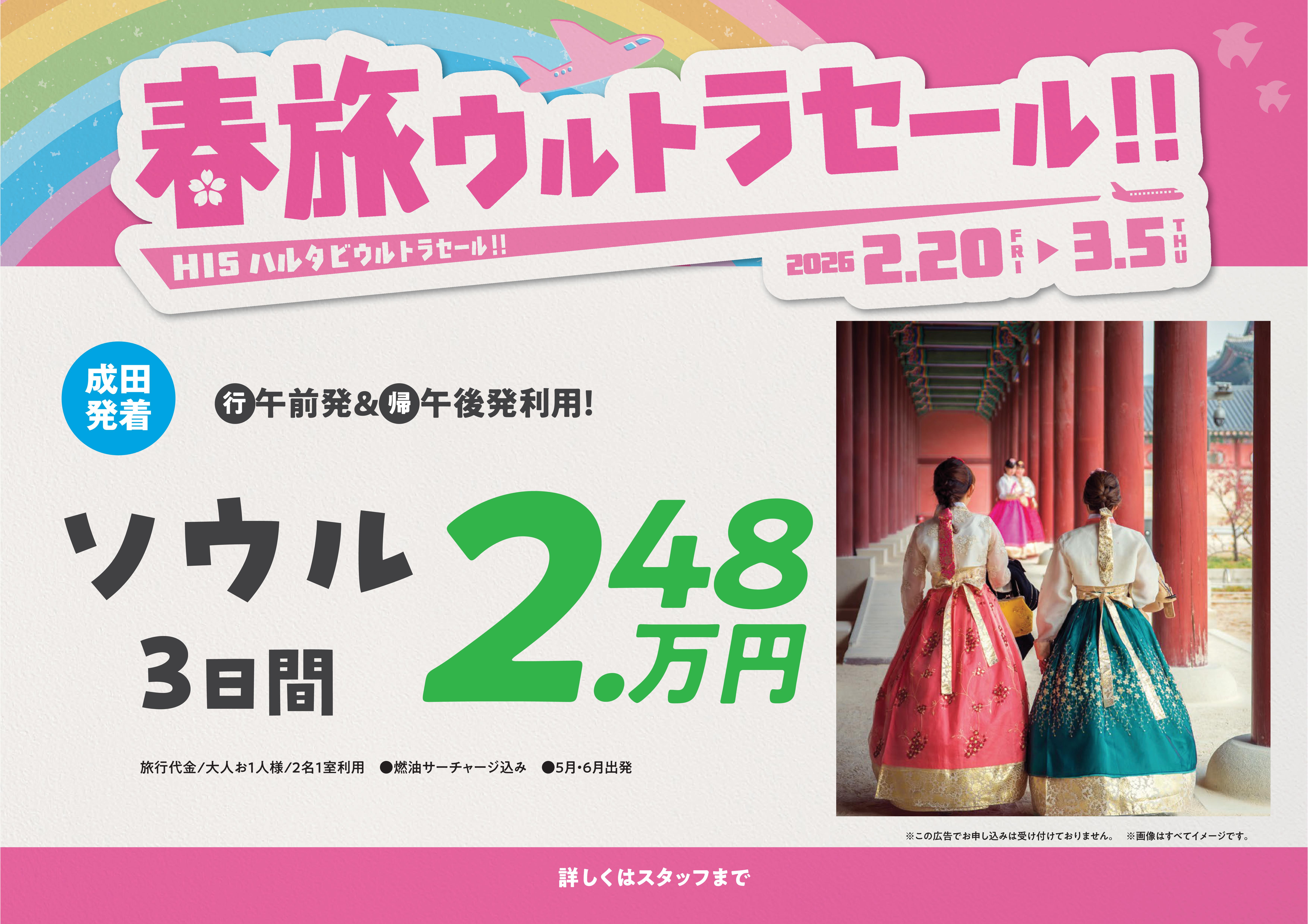 ★★★【春旅ウルトラセール!!】2/20(金)よりスタート!!★★★