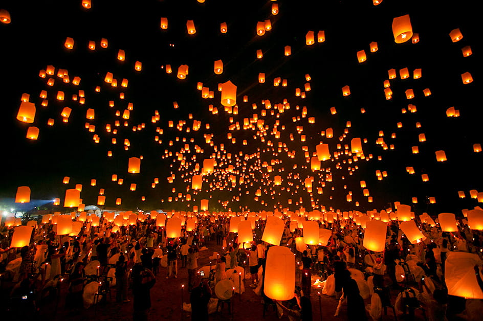 「ロイクラトン」の風習に合わせて無数のランタンを夜空に解き放つ幻想的なイベントが